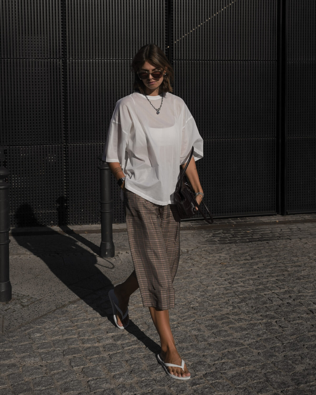 You can also change the whole vibe with shoes and bags: sneakers vs. heels, straw tote vs. mini bag. Even the fabric of the underlayer matters—mesh over a crop top reads urban, while a clean bra under an organza blouse looks more refined.