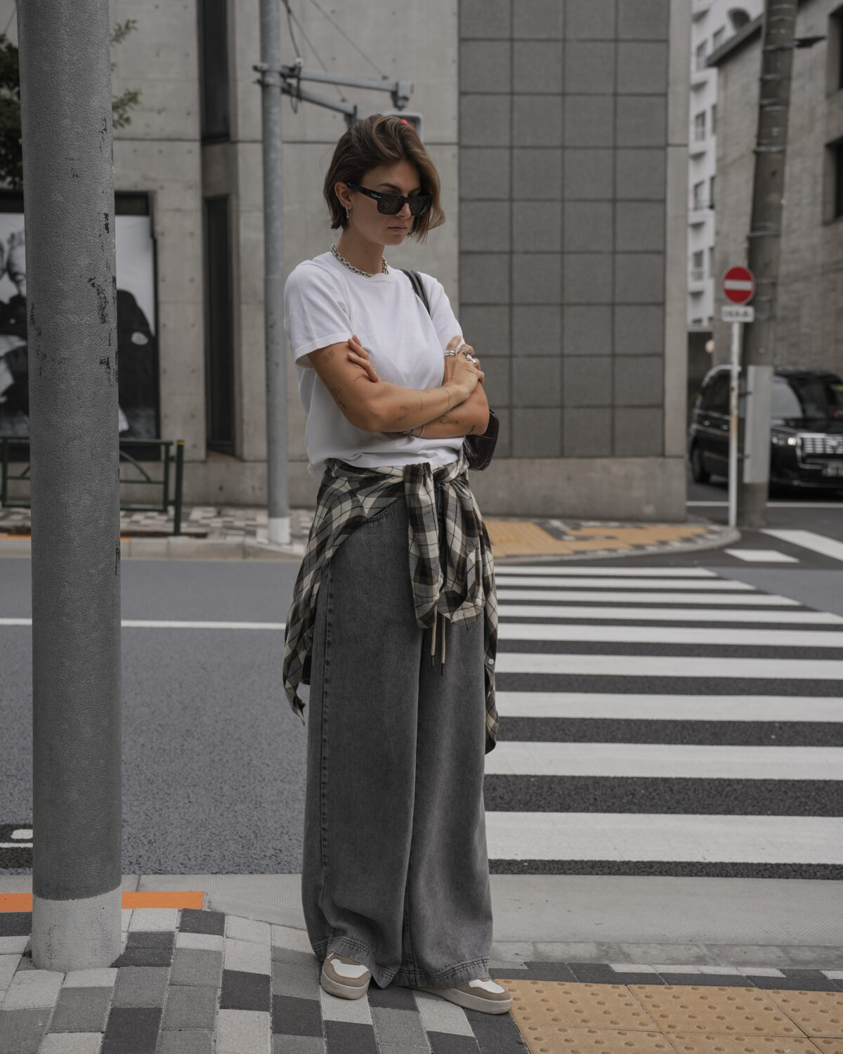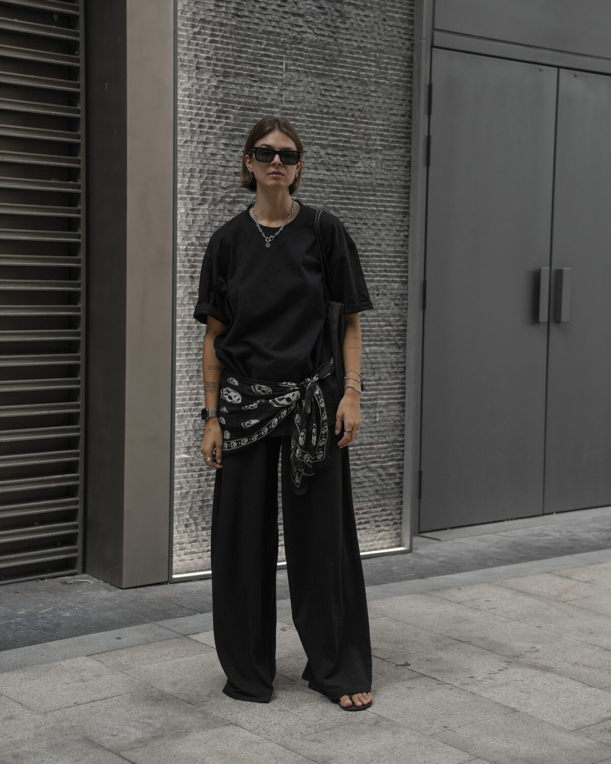 And that’s not all. The shirt-around-the-waist (or scarf-around-the-waist) moment is coming back this season in a fresh new way — and it’s showing off in full glory. In the 90s, this styling trick was everywhere: shirts and scarves knotted around the hips. Grunge perfection. The vibe? Quick & effortless meets cool & modern. Clean silhouettes, totally wearable outfits — across the board.
