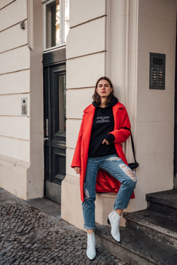 Einen roten Mantel im Winter kombinieren – so geht’s