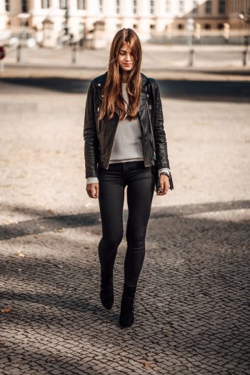 Herbstessentials: schwarze Boots und Lederjacke