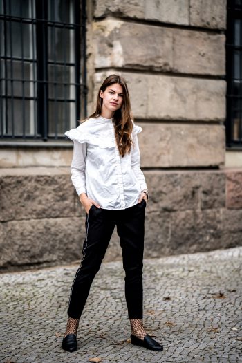Netzstrümpfe und Rüschenbluse
