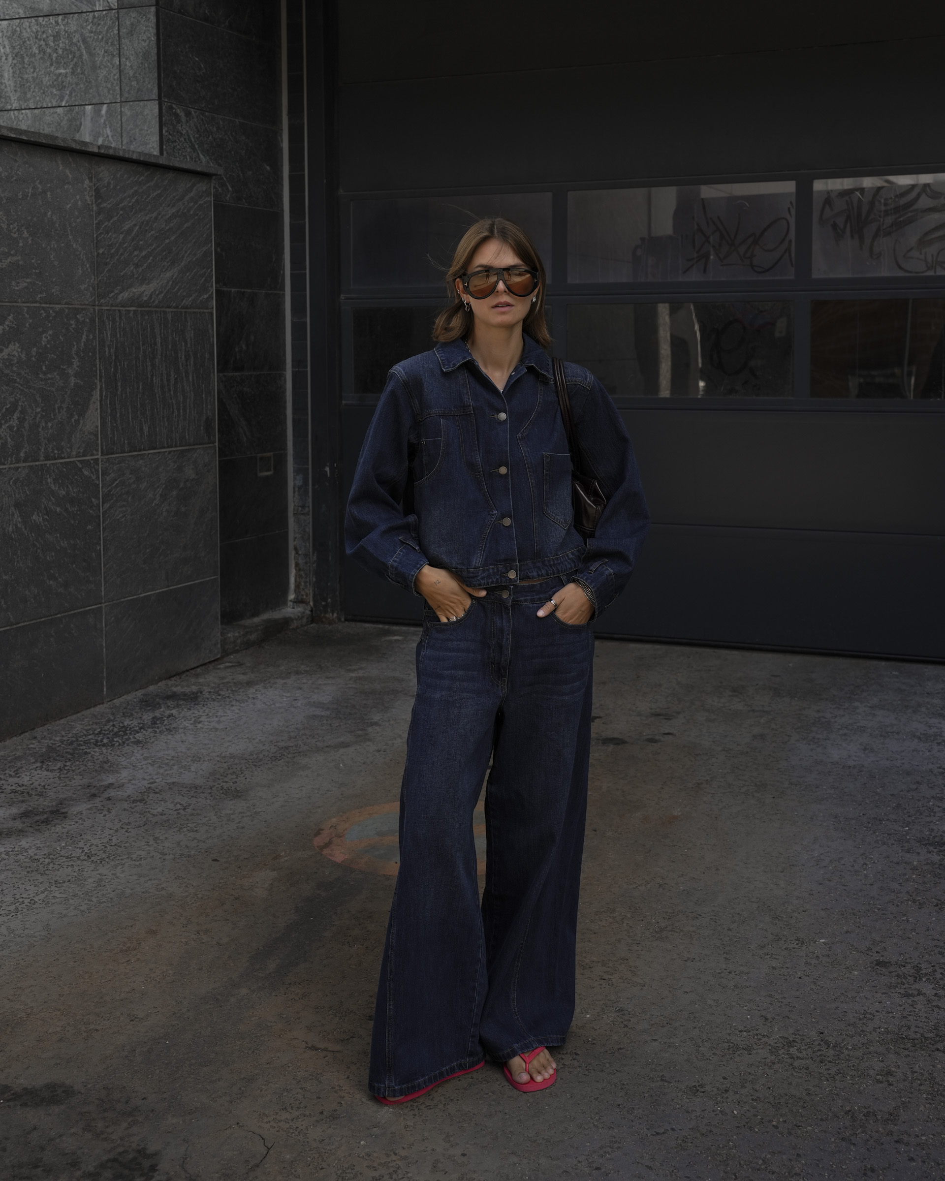 - Proportionen beachten: Oversize braucht Kontrast! Kombiniert weite Hosen mit engen Tops, setzt Gürtel oder High Heels für mehr Silhouette ein.