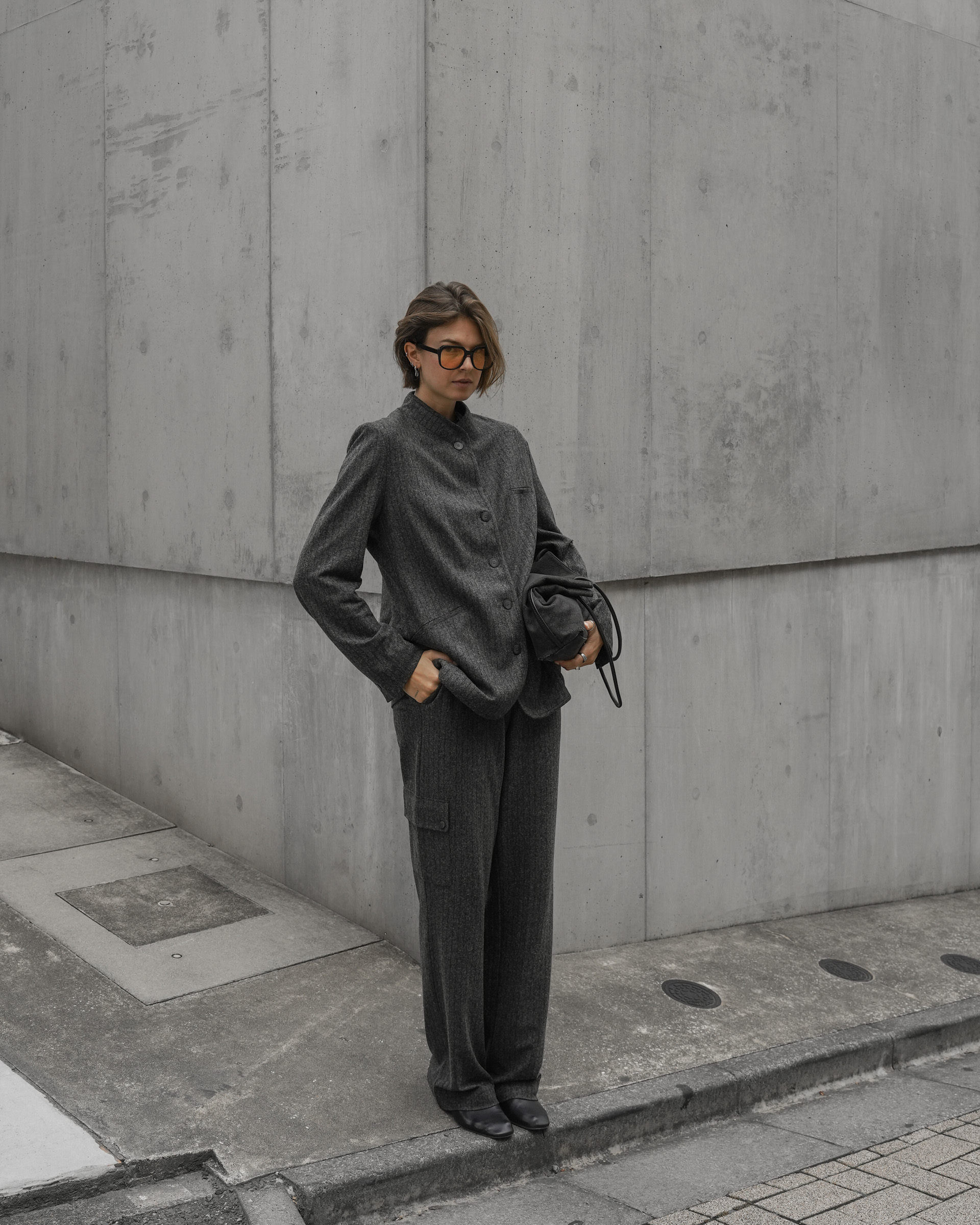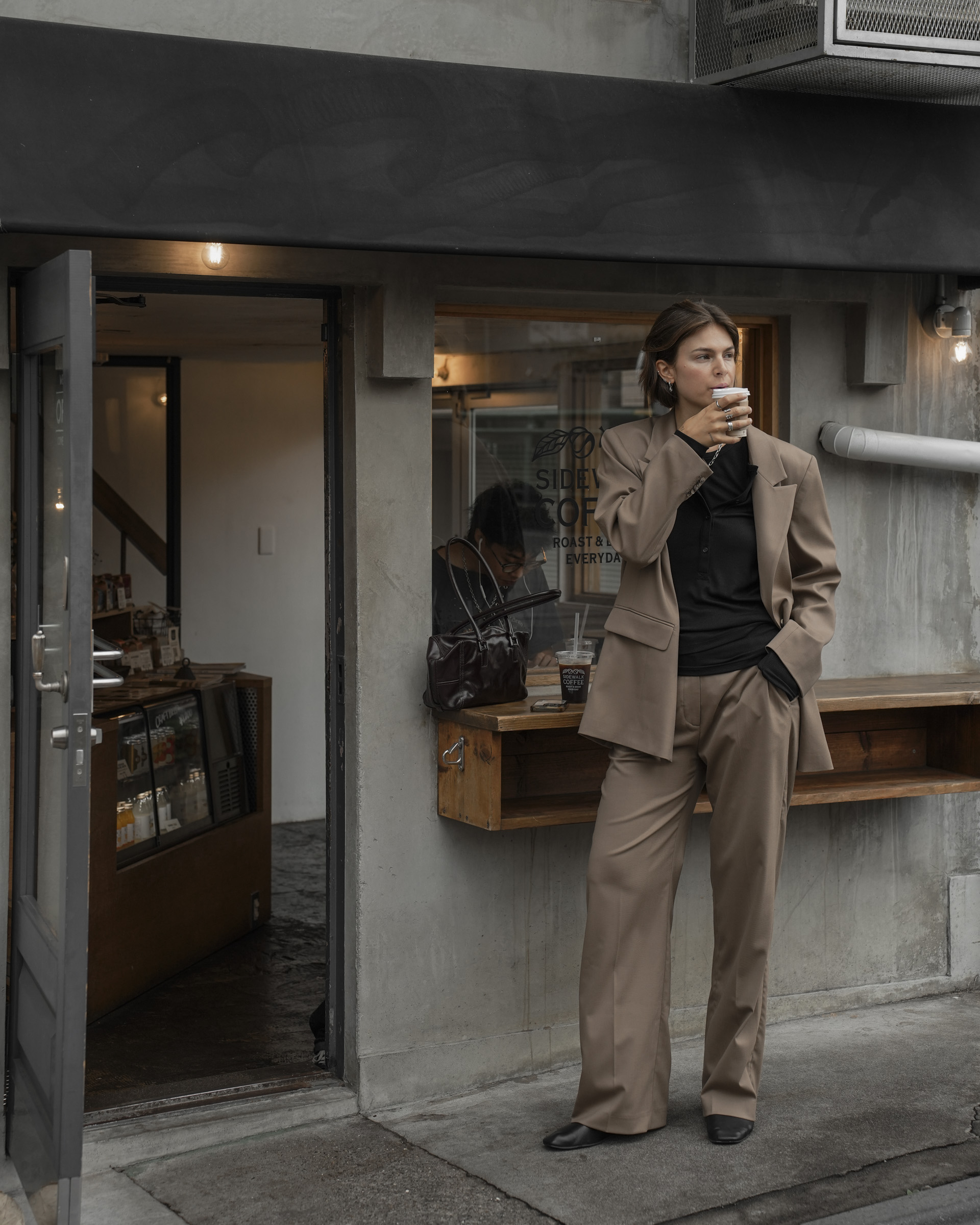 - Office Chic: Ein Tailoring-Set in Dunkelblau oder Cognac wirkt professionell, wenn du es mit einem schlichten weißen Turtleneck und eleganten Loafern trägst. Goldene Creolen und eine klassische Tote-Bag runden den Look ab.