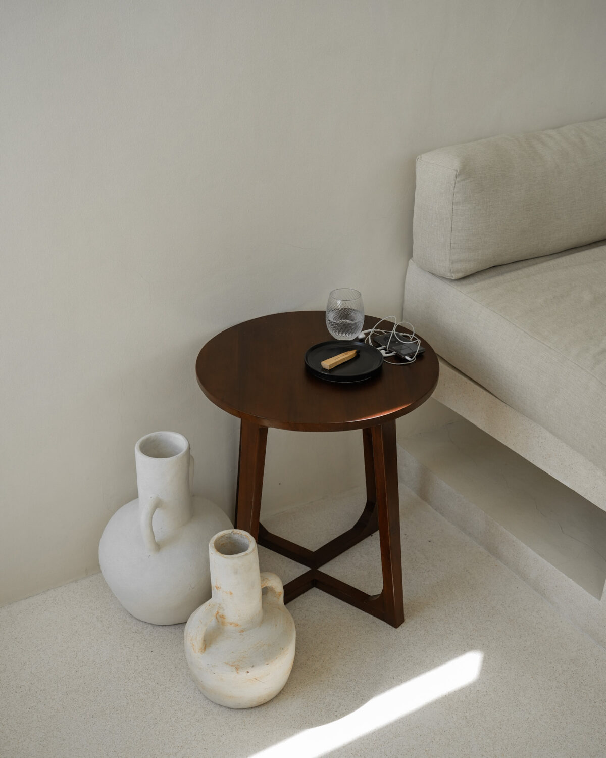 - Natürliches Holz und Bast: Accessoires aus Naturmaterialien bringen Wärme ins Konzept.