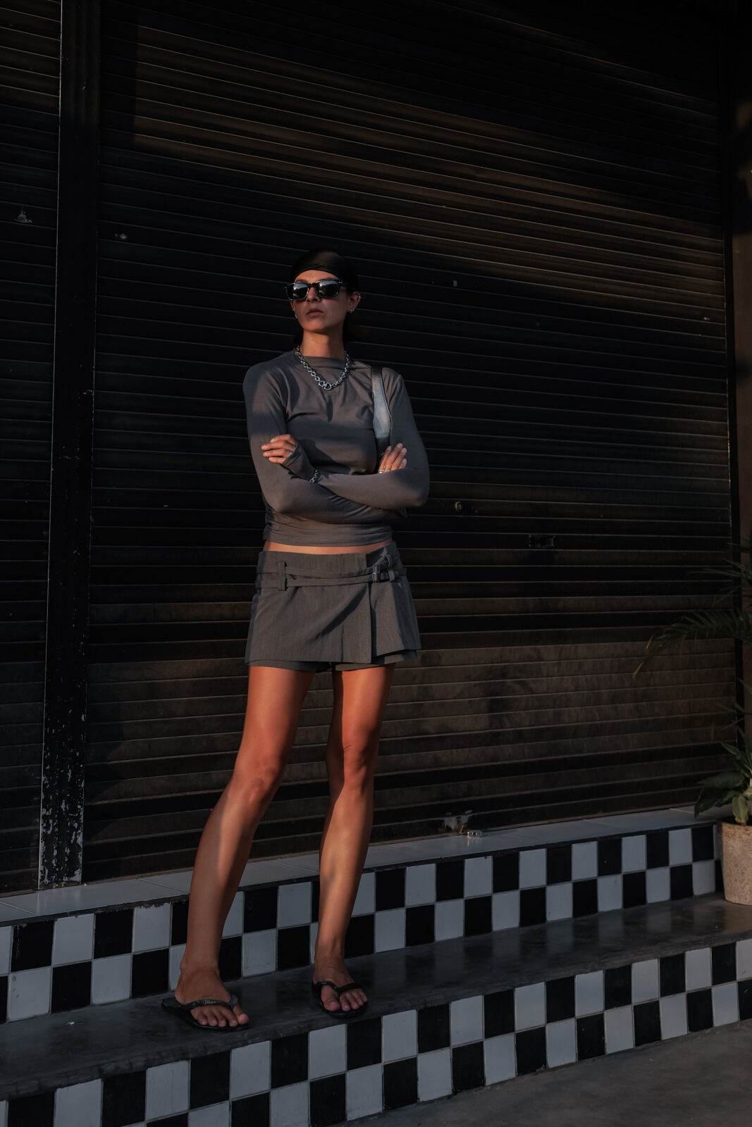 - Greige: die Fusion aus Grau und Beige – Greige ist die ideale Alternative zu klassischen Neutrals. Besonders chic für minimalistische Looks als Hose, Bluse oder Mantel.